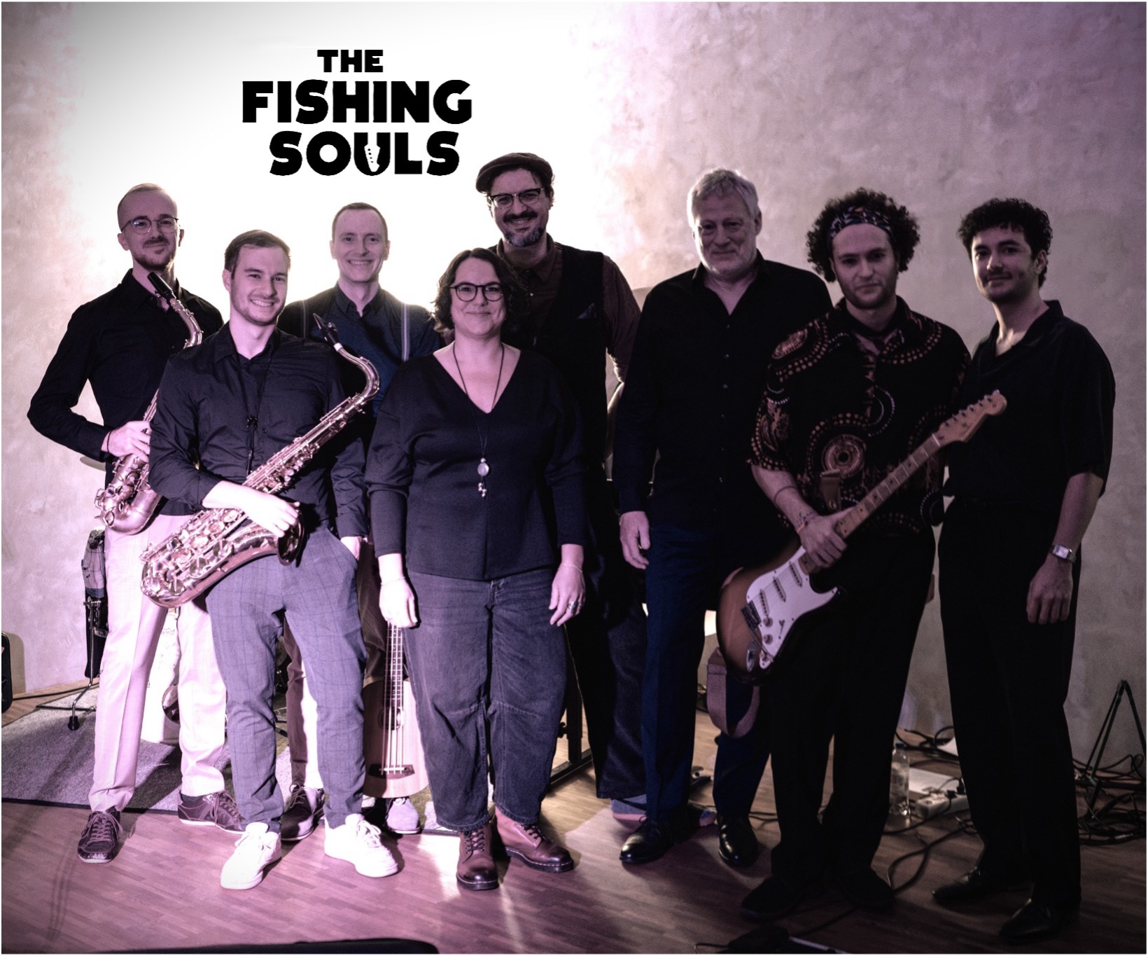 “LET YOUR SOUL FEEL FREE!” Unter diesem Motto bringt die südhessische Band The Fishing Souls jede Menge Soulfood, aber auch Gerichte mit Funk, Blues und Reggae, auf den Teller. Nicht nur in klassischer Standardbesetzung mit Gesang, Gitarre, Bass und Schlagwerk, sondern auch mit 2 Saxofonen und Keys angereichert, grooven sich die “Souls” in die Seelen des Publikums und spannen mit eigenwilligen Interpretationen einen Bogen von Elmore James, Sam Cooke, Ray Charles und Aretha Franklin über Stevie Wonder und Amy Winehouse zu Seeed, Aloe Blacc, DeWolff und vielem mehr. Kennengelernt hat sich der Kern der Gruppe bei einer Jamsession. Zwischen den Musikern Thomas Baumann, Ferdinand Fischer, Bernd Pirner und Thomas Weber hat es gleich geFUNKt, womit klar war: Da muss noch mehr. Es reihten sich sodann noch weitere musikalische Fischers – Melanie, Felix und Frederik – sowie Jonas Keim ein, schlossen sich ohne weiteres der Soulfishing-Mission an und komplettieren somit eine vielschichtige und authentische Band.